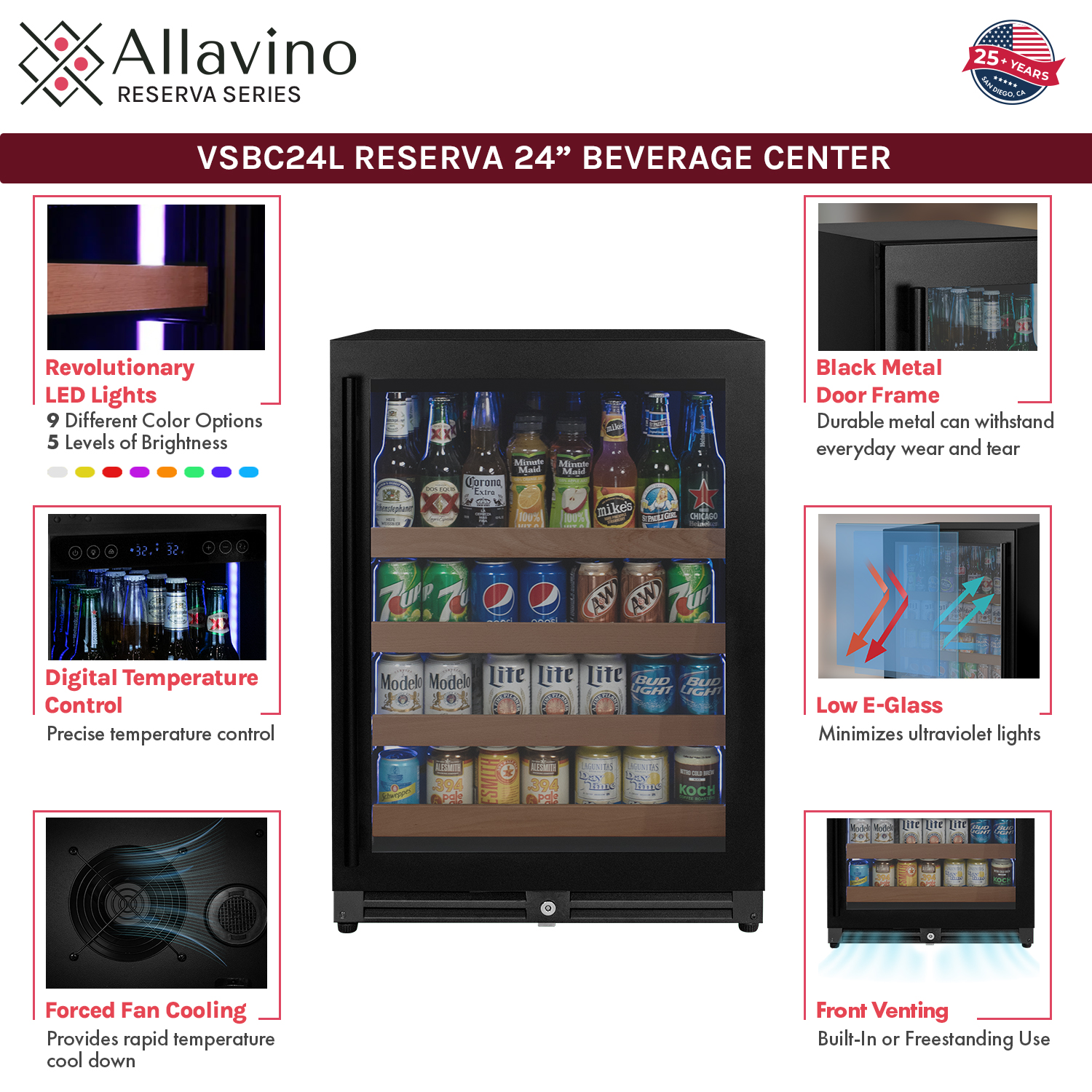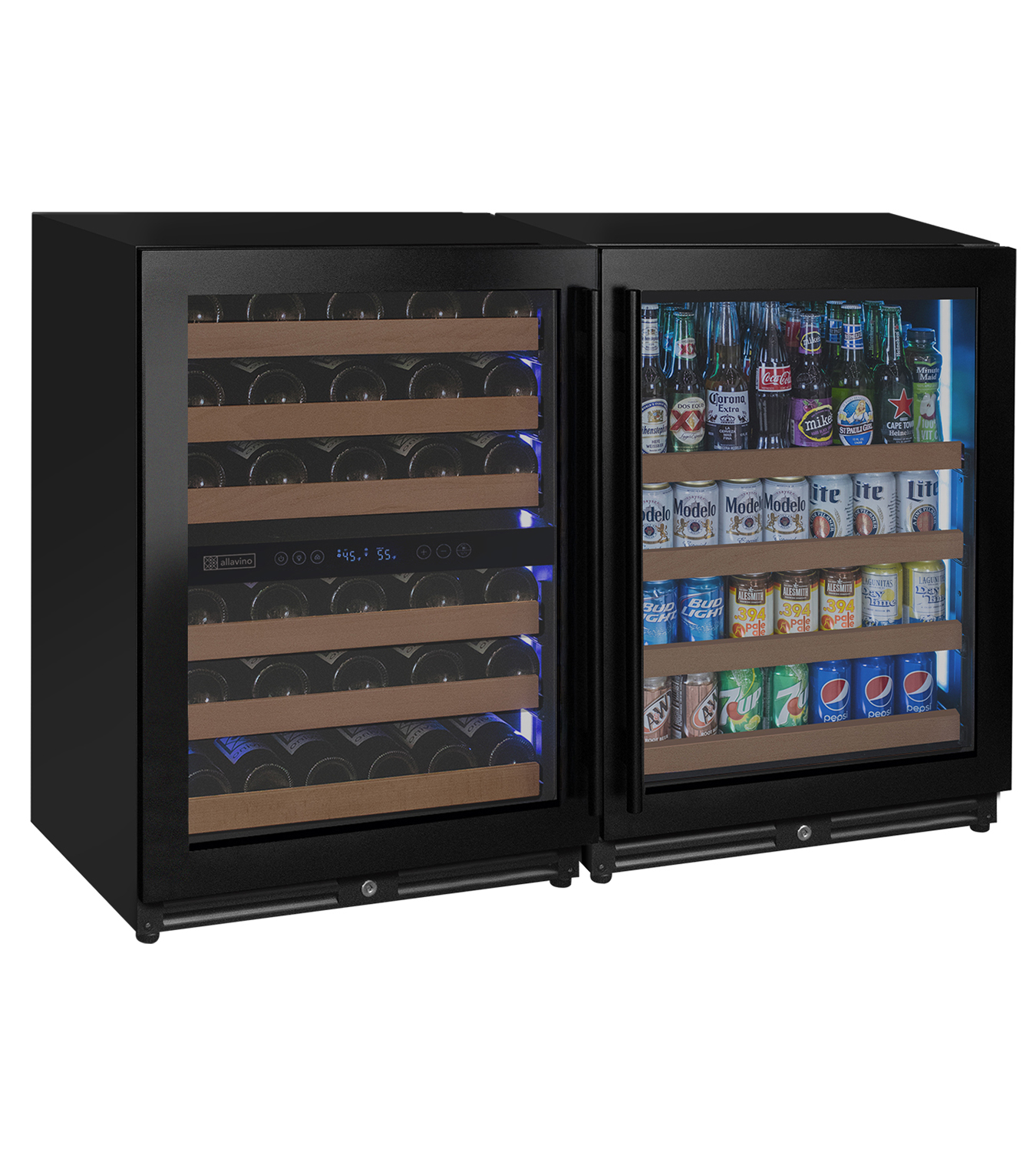 Enjoy superior built-in or freestanding storage for all of your favorite beers, sodas, and wines with Allavino's Reserva 3Z-VSWBC24B Wine and Beverage Center with Tru-Vino Temperature Control Technology! Made up of a beverage center anda dual zone wine refrigerator with opposite hinges, this unit makes it easy to keep a wide assortment of your favorite drinks close at hand thanks to the latest innovation in beverage storage technology by Allavino. Precisely set your desired temperature with the easy-to-use digital control panels and trust in Tru-Vino Temperature Control Technology to keep your beverages perfectly chilled through consistent temperature maintenance. Allavino's exclusive FlexCount shelving design allows for ultimate flexibility and versatility when it comes to storing a variety of bottles and cans. Smooth gliding shelves allow for easy access to your collection.