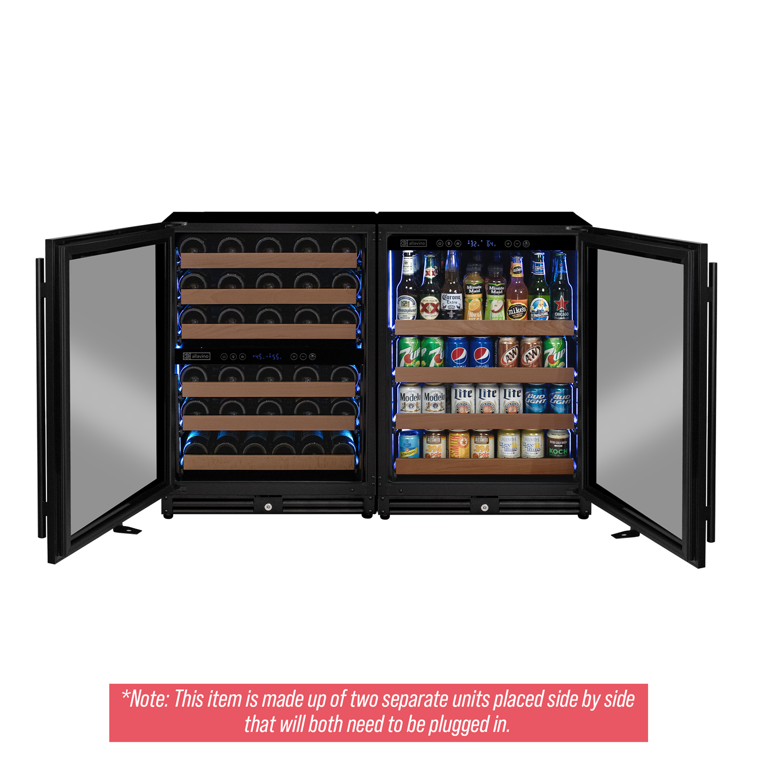 Allavino Reserva Series 102 Bottle Three Zone Built-in Luxury Wine Refrigerator & Beverage Center with Black Metal Doors - Side-by-Side