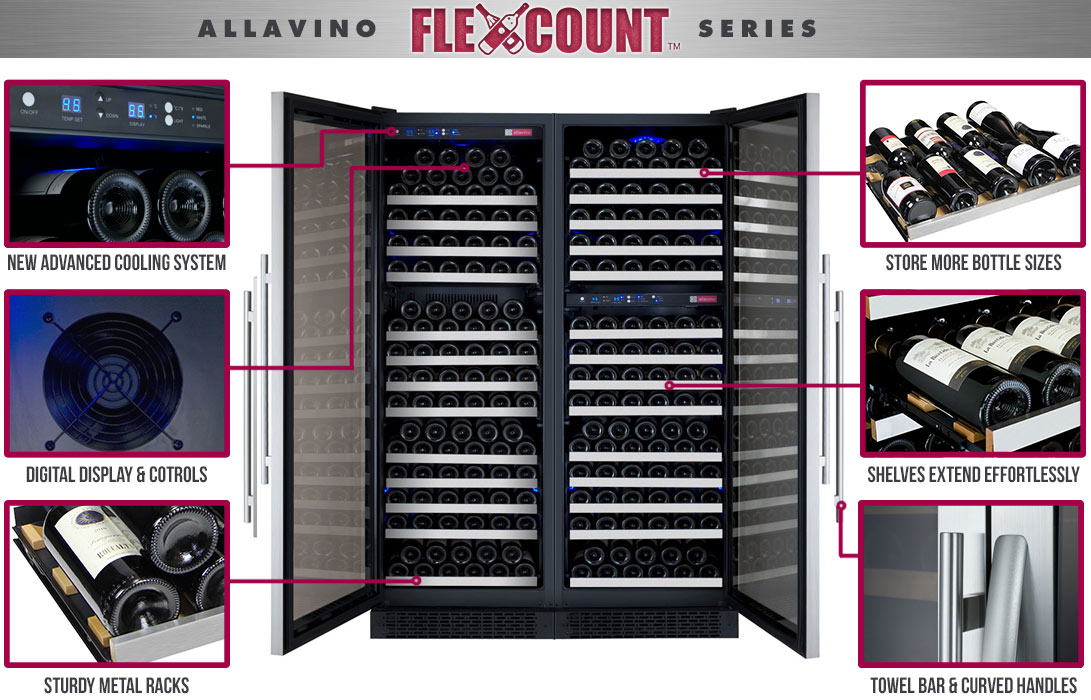 - The Allavino 3Z-VSWR7772-SST FlexCount Series Triple Zone Wine Refrigerator is a convienient side by side wine refrigerator that is packed with features for optimal wine storage
