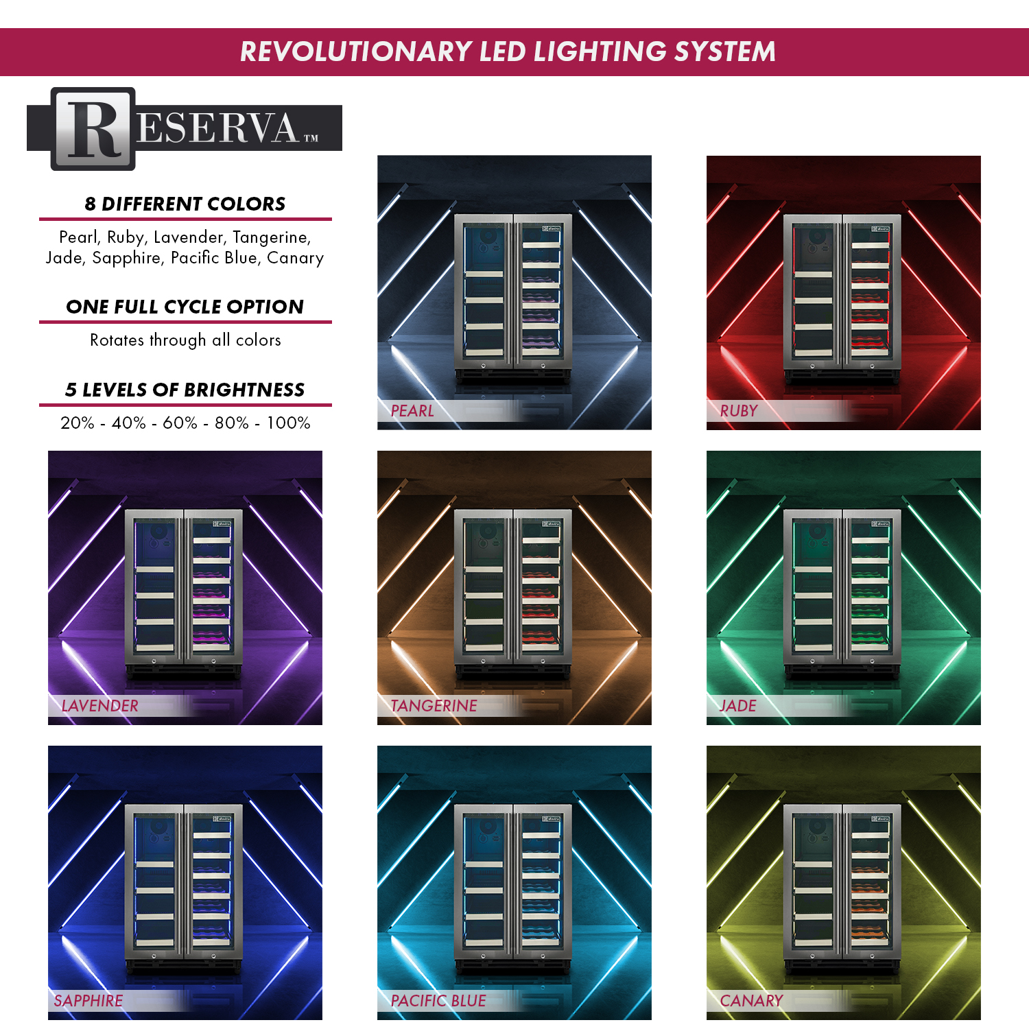The customizable LED lighting system gives you 8 different color options + 1 full cycle option that rotates through all colors. Unlike incandescent lighting, LED lighting does not give off heat that can damage your wine.