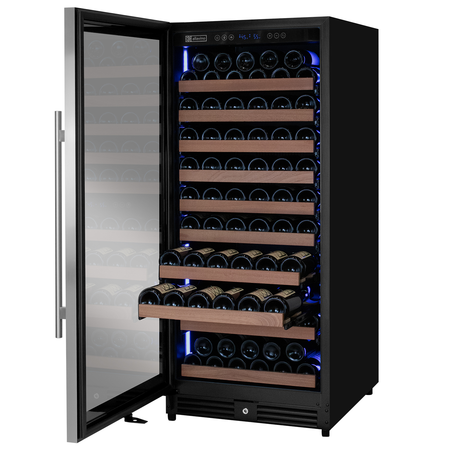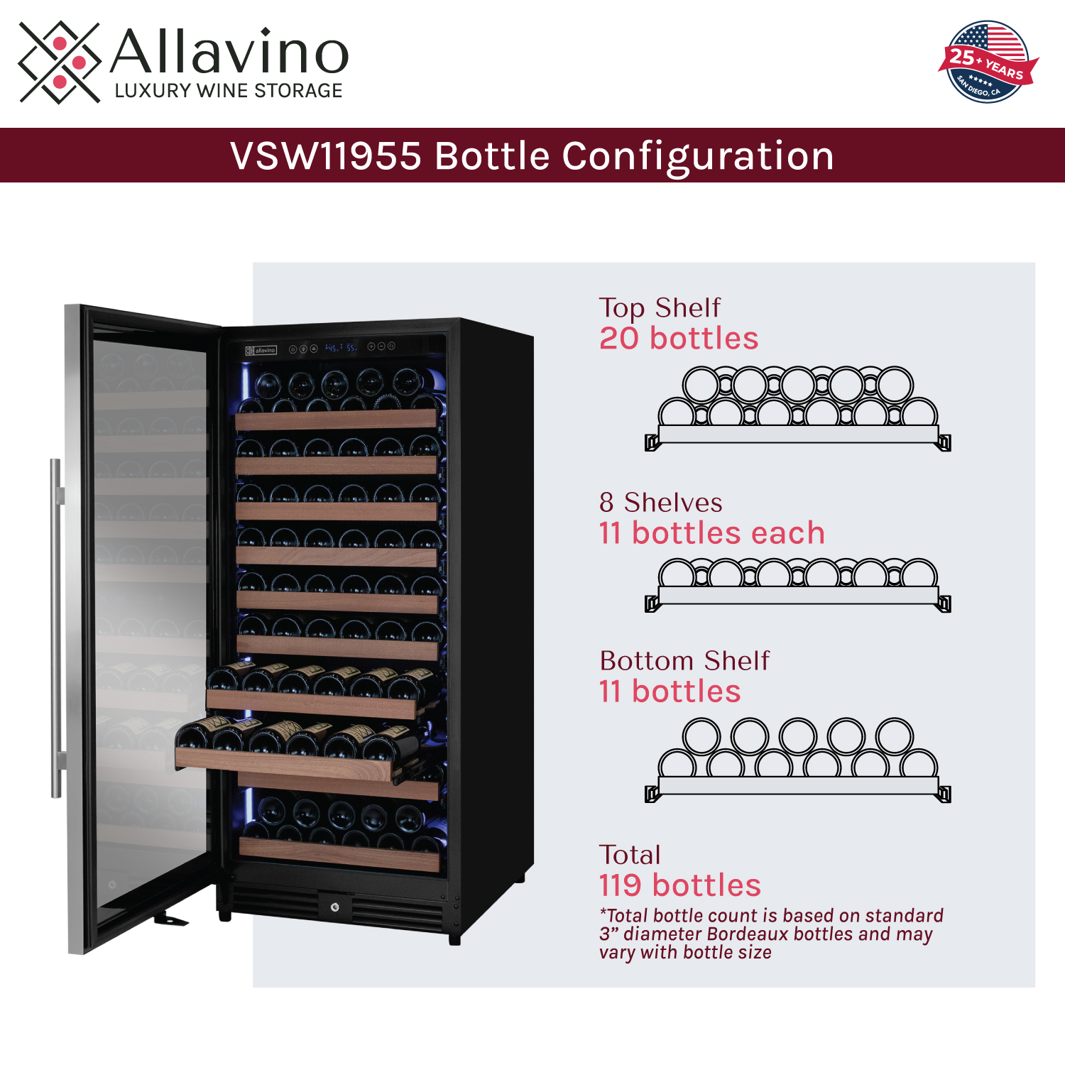- Allavino's FlexCount shelving design gives you flexible storage options for up to 119 bottles of wine