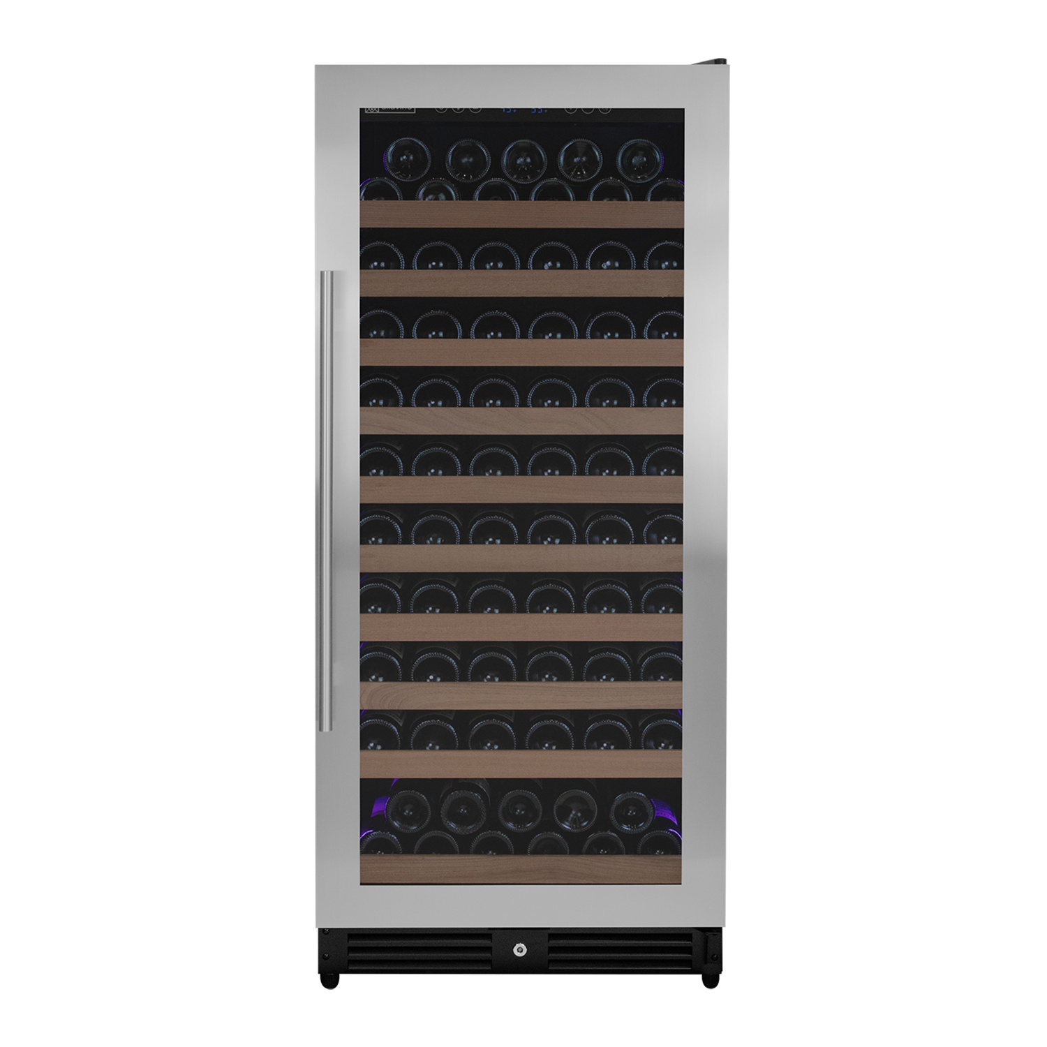 Revolutionary Reserva LED lights give you 8 different color options + 1 full cycle option that rotates through all colors. Unlike incandescent lighting, LED lighting does not give off heat that can damage your wine. The LED light strips are flush with the wall interior allowing more storage space for your collection.
