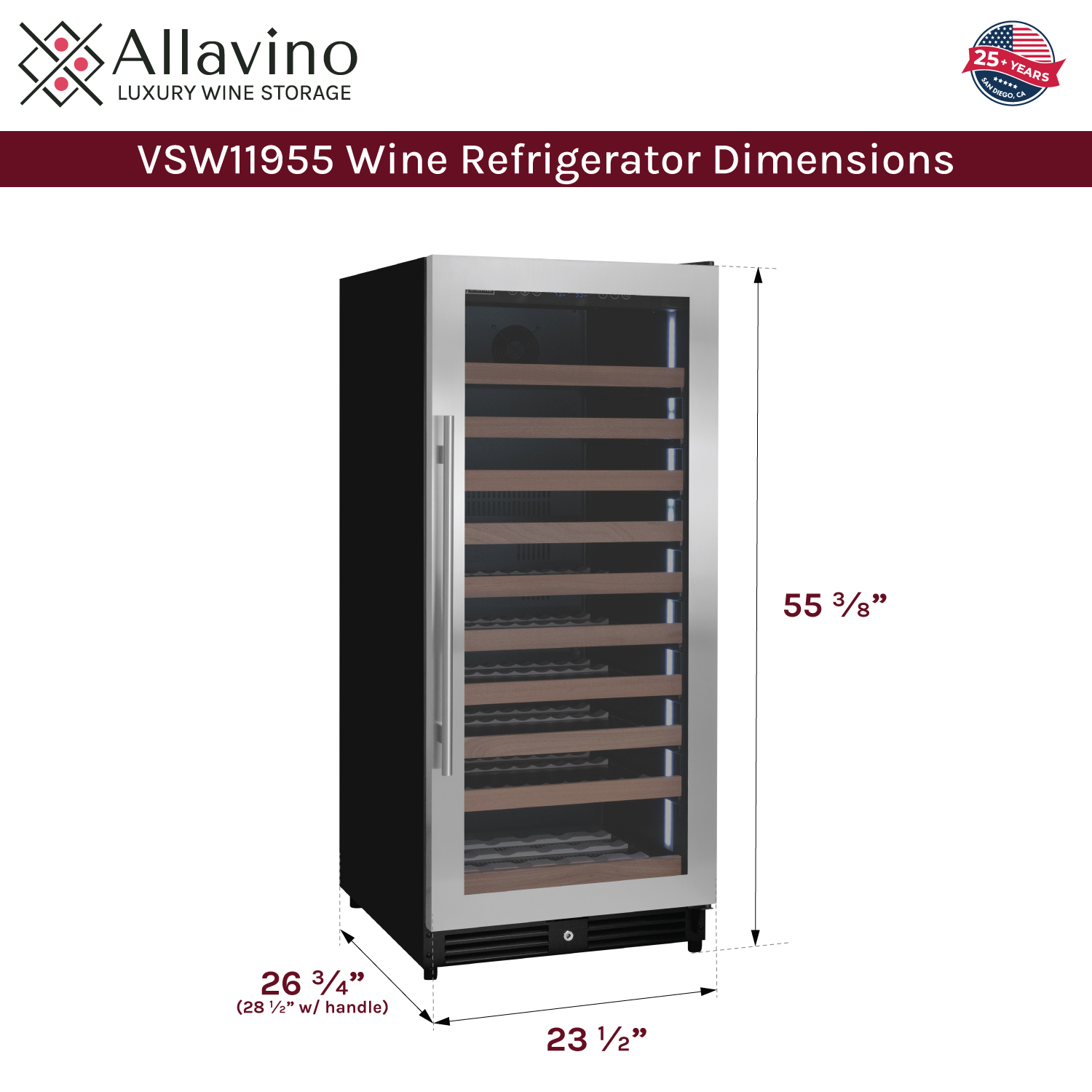 Dimensions: 55" H x 23.5" W x 26.75" D