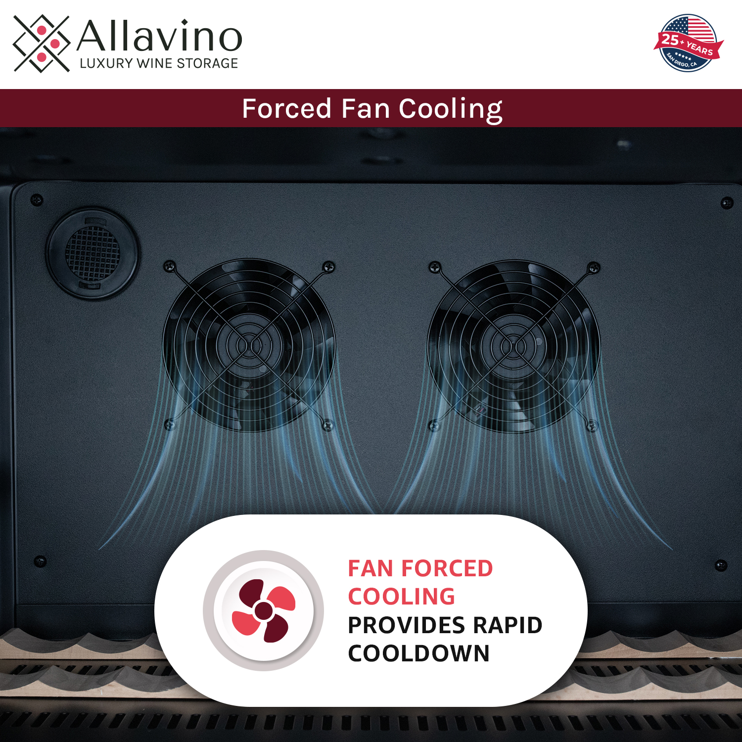 Internal fan circulates for even cooling and faster cooldown. The dispersal of cooling power also prevents drastic temperature fluctuations that could be harmful to your wine.
