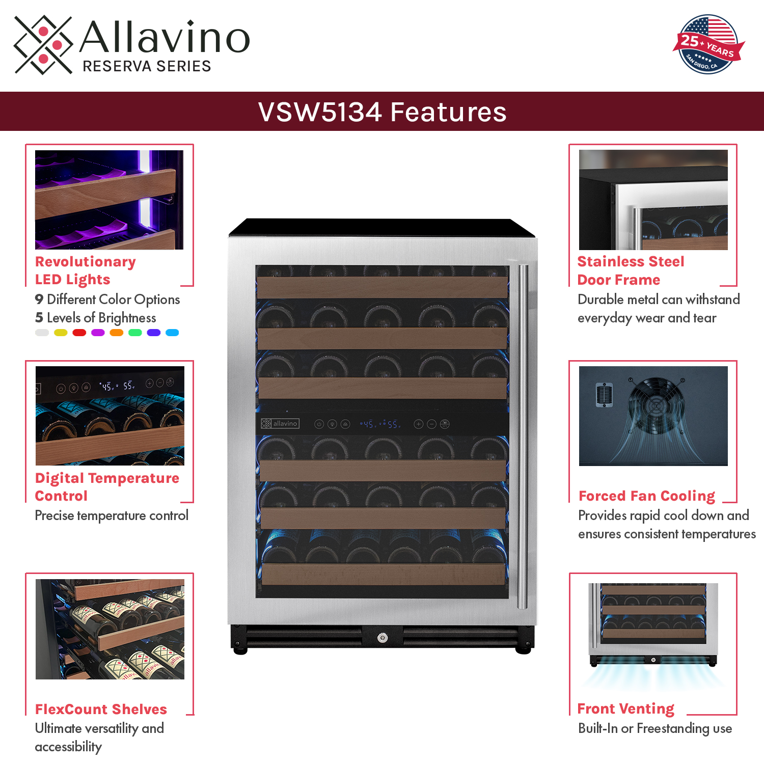 - Allavino's FlexCount shelving design cradles your bottles to give you flexible storage options for up to 51 bottles of wine