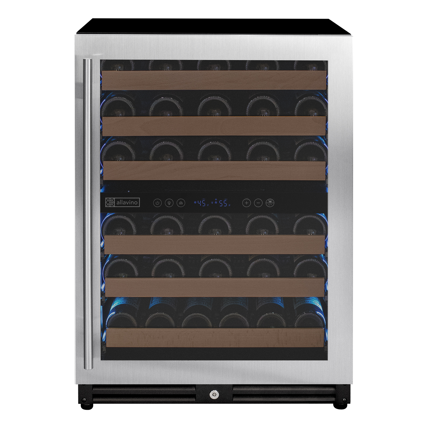 Allavino's exclusive FlexCount shelves give you ultimate flexibility and accessibility, regardless of bottle size. Spacing between each shelf gives you enough clearance to not worry about racks scraping your bottle labels. Wood slats refine each shelf to cradle your wine bottles and are designed with vibration-reduction technology to prevent harmful vibrations from excessive movement and damage.