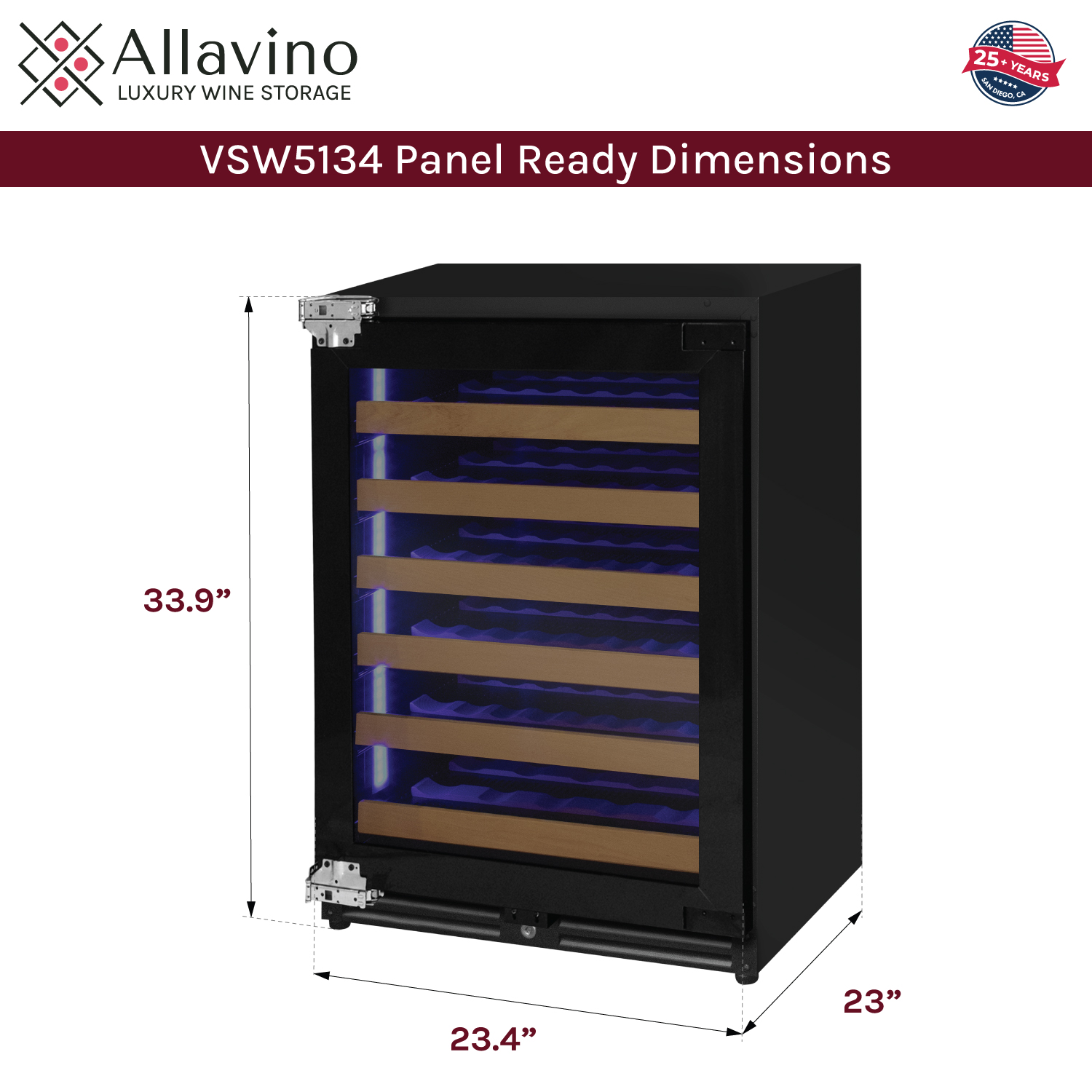 Allavino Reserva Series - 51 Bottle Single Zone Built-in Luxury Wine Refrigerator with Panel Ready Overlay Door - Left Hinge