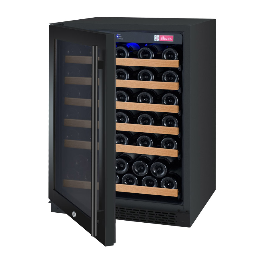 Allavino 24" Wide FlexCount Series 56 Bottle Single Zone Black Left Hinge Wine Refrigerator