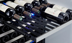 Place up to 53 bottles of wine on the slide-out stainless steel trimmed wooden shelves that allow for easy bottle placement and retrieval - Suitable for both Built-In and Freestanding Use: