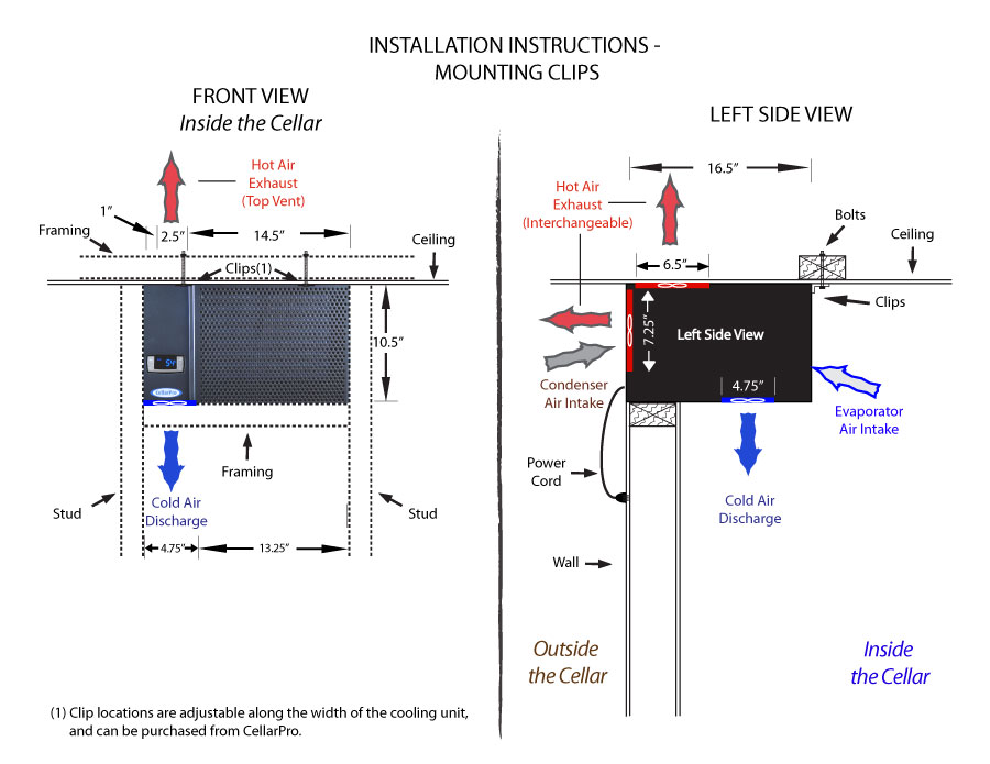 - Note: This cooling unit is designed to replace Breezaire 2200 and WineMate 2500 top and back vented cooling units. Before purchasing a CellarPro cooling unit, 1) check the power cord placement on your existing cooling unit, and 2) check that the outside dimensions match your existing cooling unit.