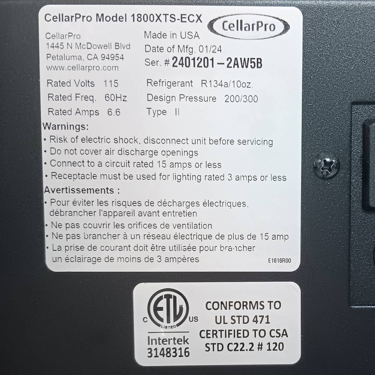 - CellarPro's 2-Year Standard Warranty, the most thorough in the industry, protects the unit against manufacturing defects.