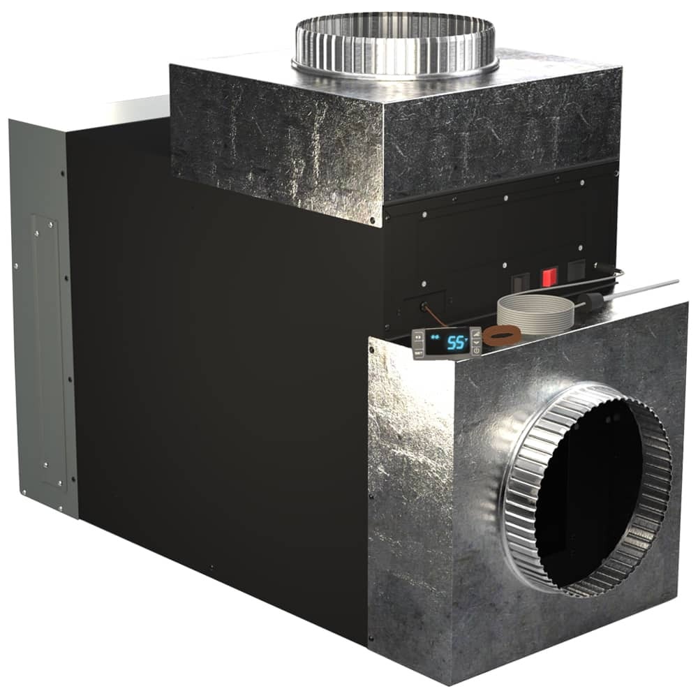 Excess condensate is managed with a high-capacity stainless steel drain pan, welded 1/2" drain line and 100W electric heating element with "On/Off" Control.