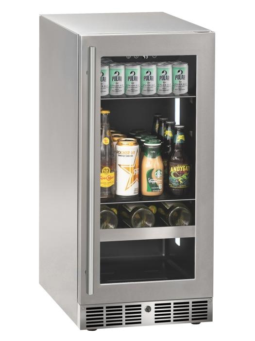 Marvel 15" Wide Stainless Steel Frame Glass Door Beverage Center
