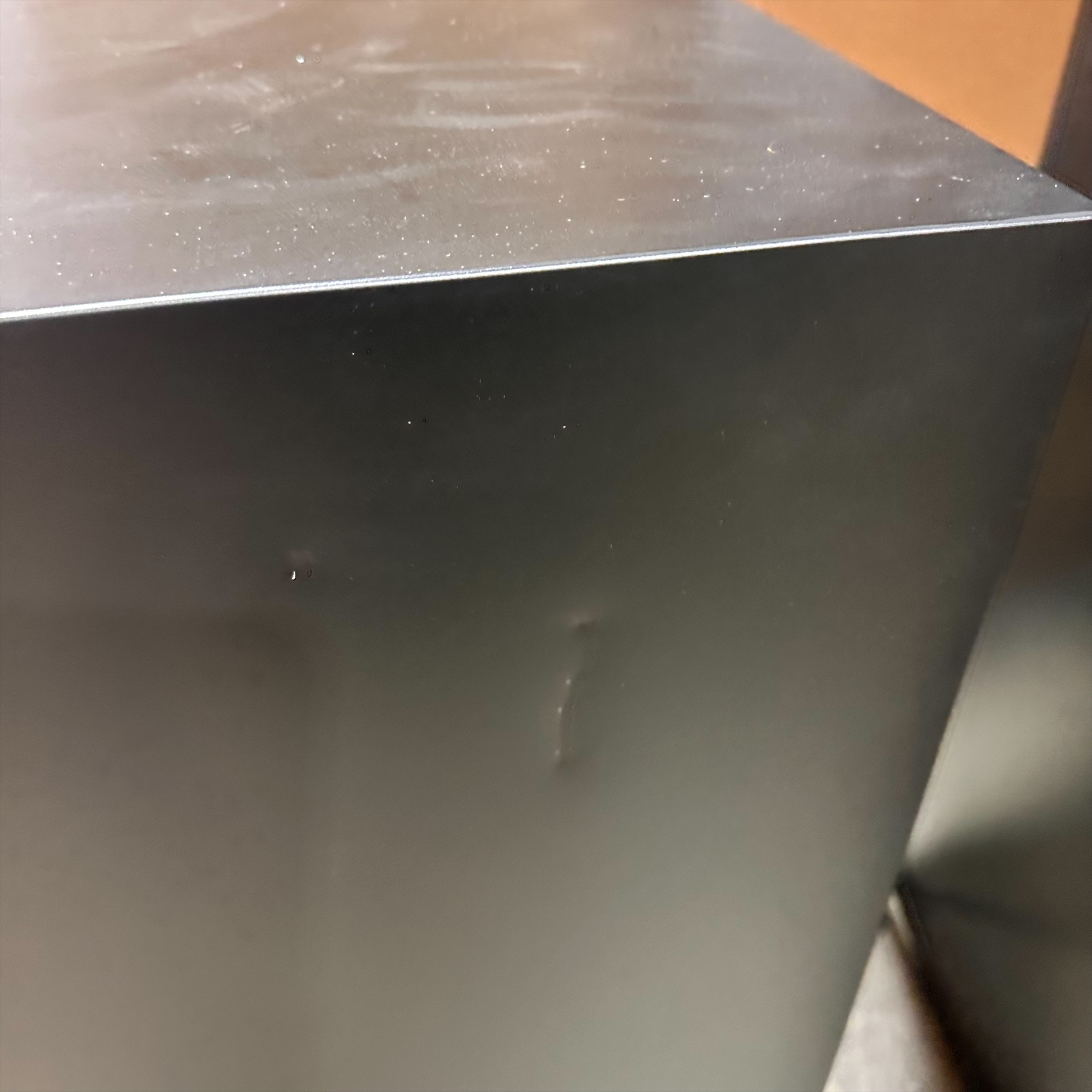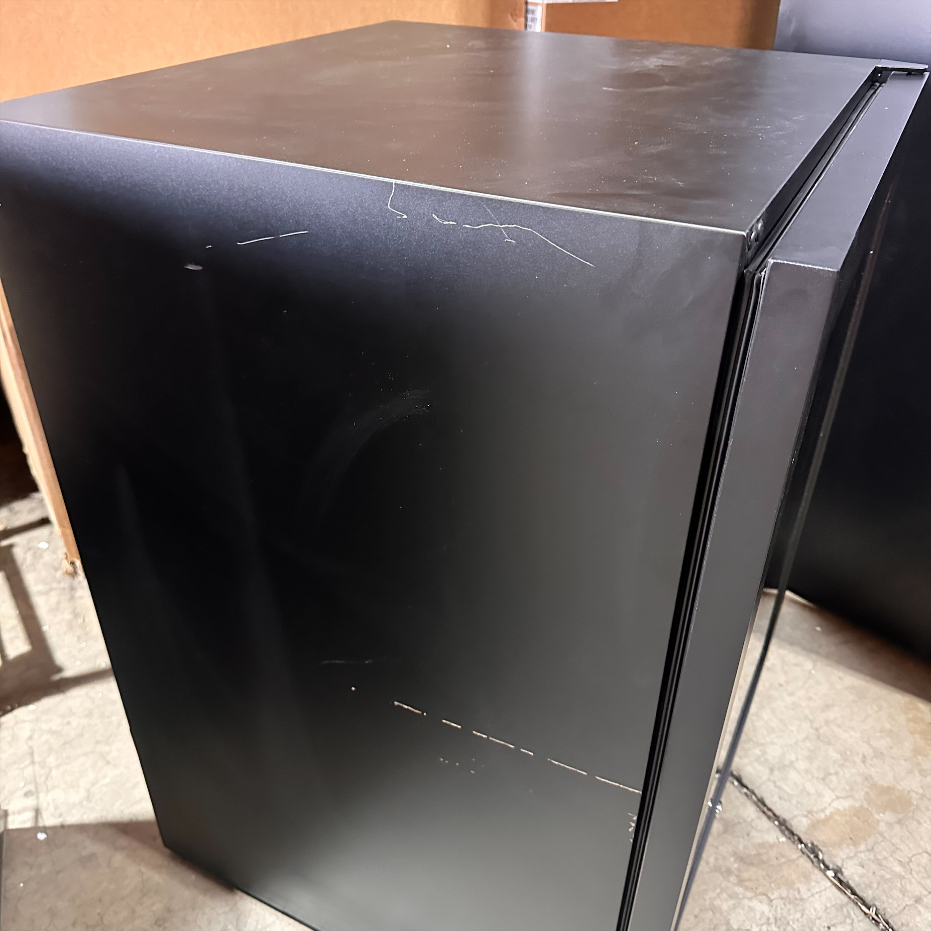 This unit was inspected to ensure it includes all the standard parts and manual. It is in good physical condition with the exception of small scratches and a dent on the left and right sides of the unit. (see last photos). Damage does not affect the performance of the unit. Wine refrigerator has been tested to ensure that it is in good working condition with a temperature that was verified down to 43.1°F on the top zone and 44.7°F on the bottom zone for the lowest setting.