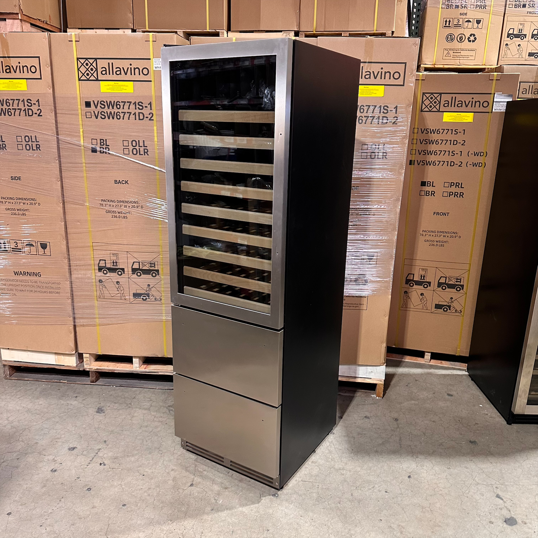 Scratch & Dent - We currently have an Allavino YHWR7724D-S Stainless Steel Wine Refrigerator with Two Refrigerated Drawers that was returned to us.